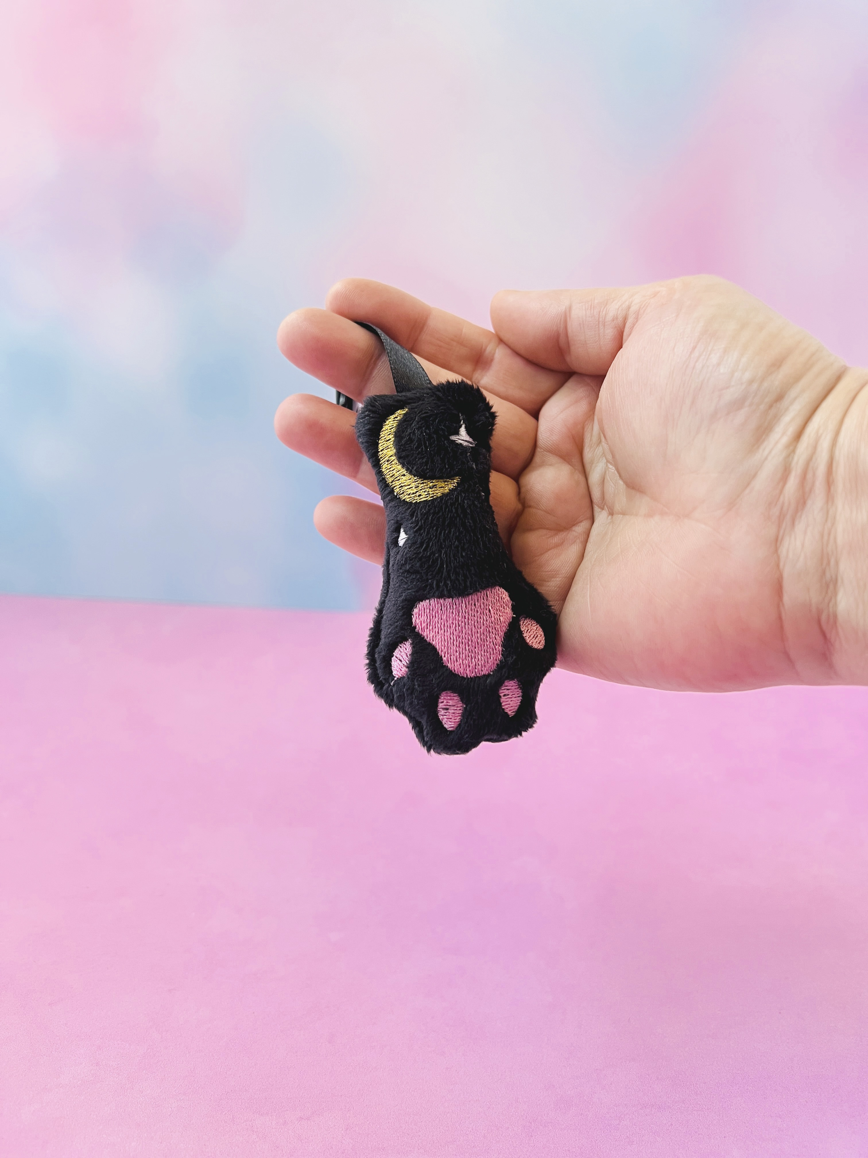 This Celestial Cat Paw Plush Bag Charm is a magical twist on my bestselling cat paw design! Made from soft, plush minky fabric, this version features embroidered crescent moon and white star details for a dreamy, cosmic vibe. Perfect for lovers of celestial aesthetics, astrology-inspired accessories, kawaii fashion, and creepy cute style, this plush paw adds a touch of moonlit magic to your everyday accessories.