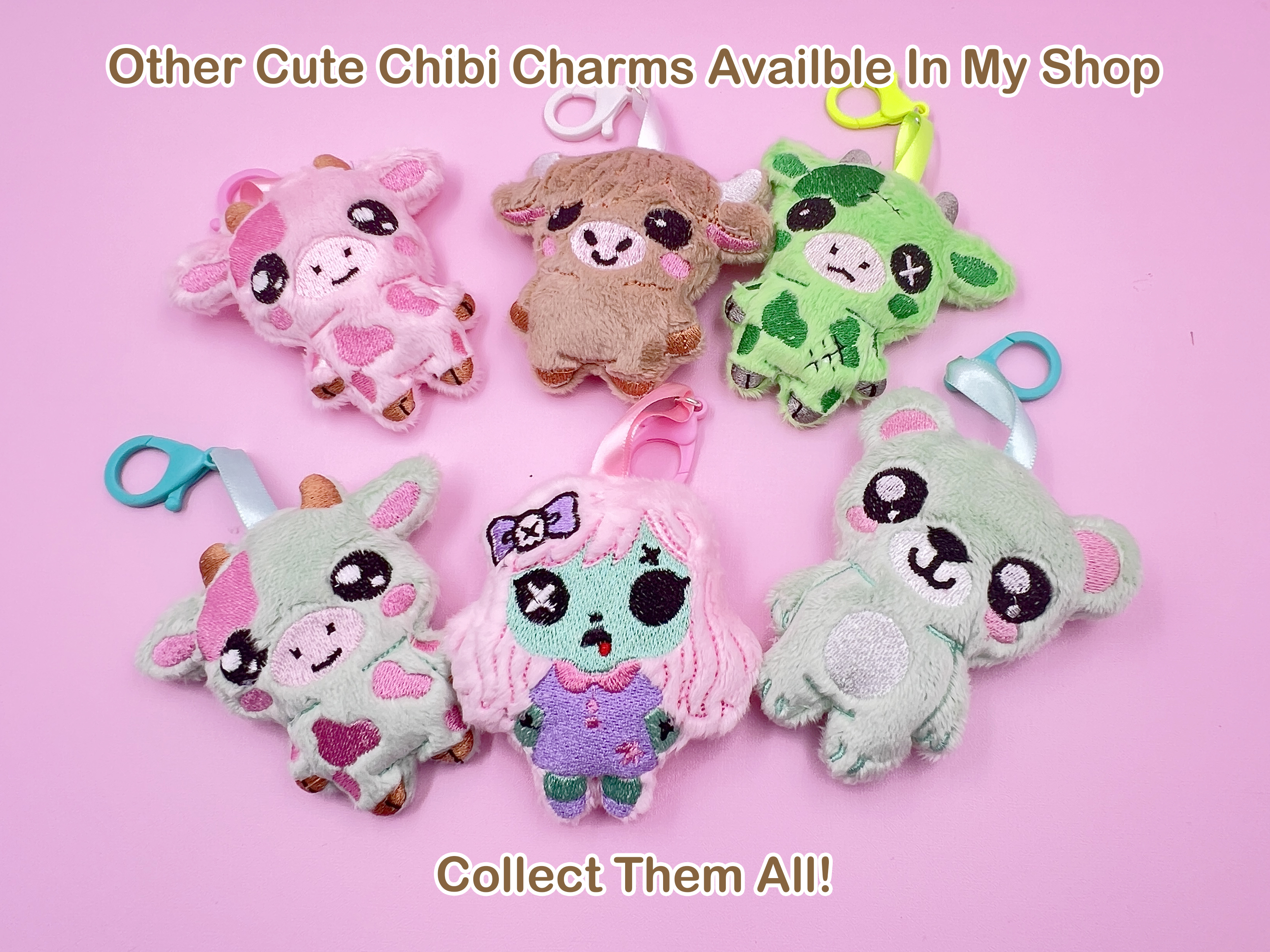 Collect her alongside my other zombie plush charms like the Zombie Cat, Zombie Cow, and Zombie Bear to complete your creepy cute collection!