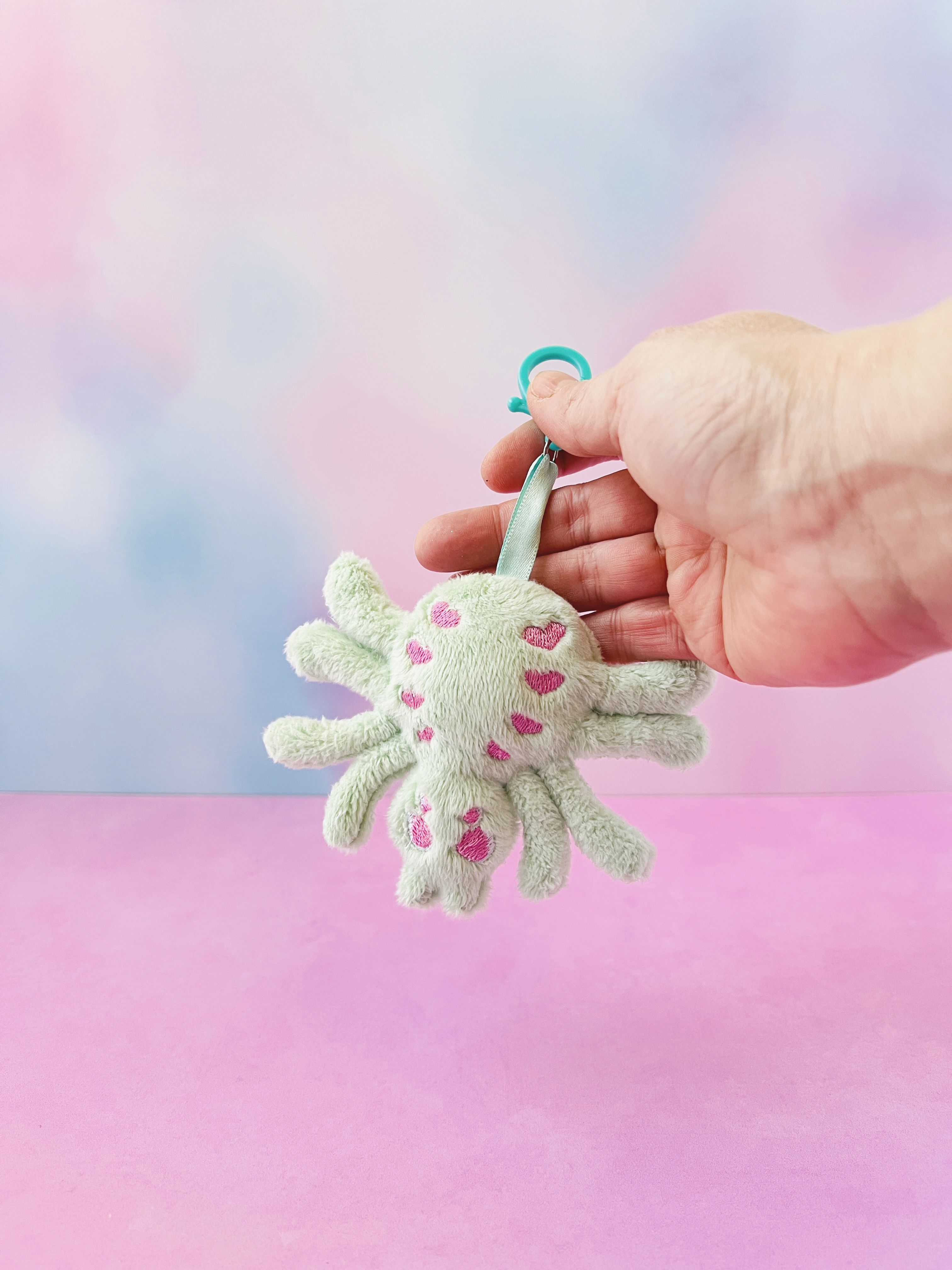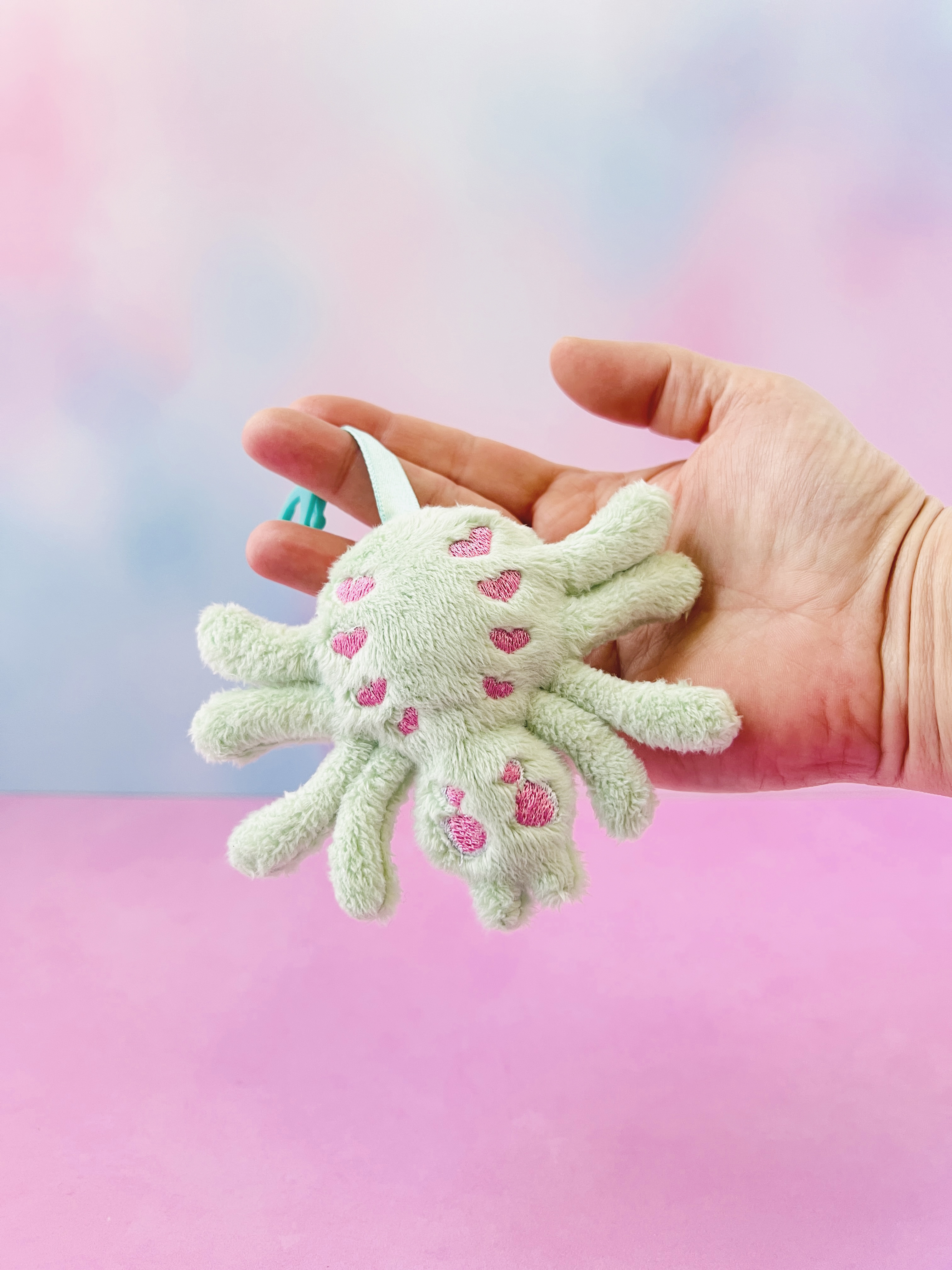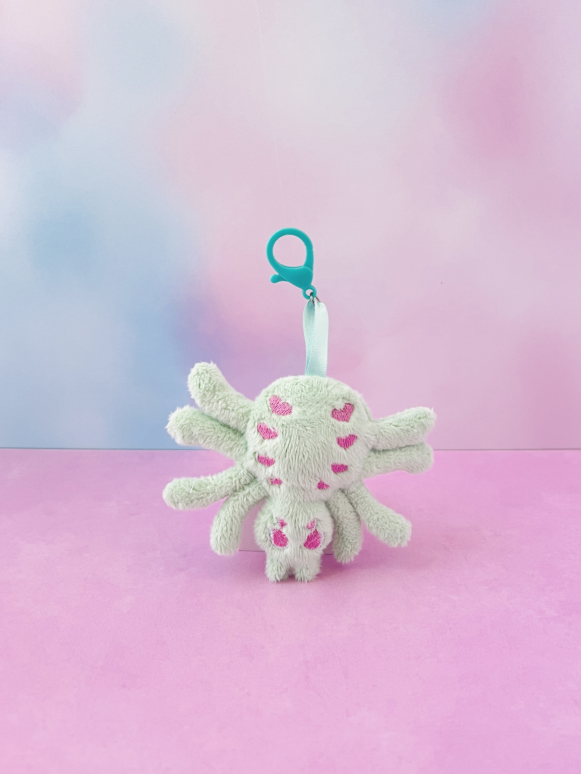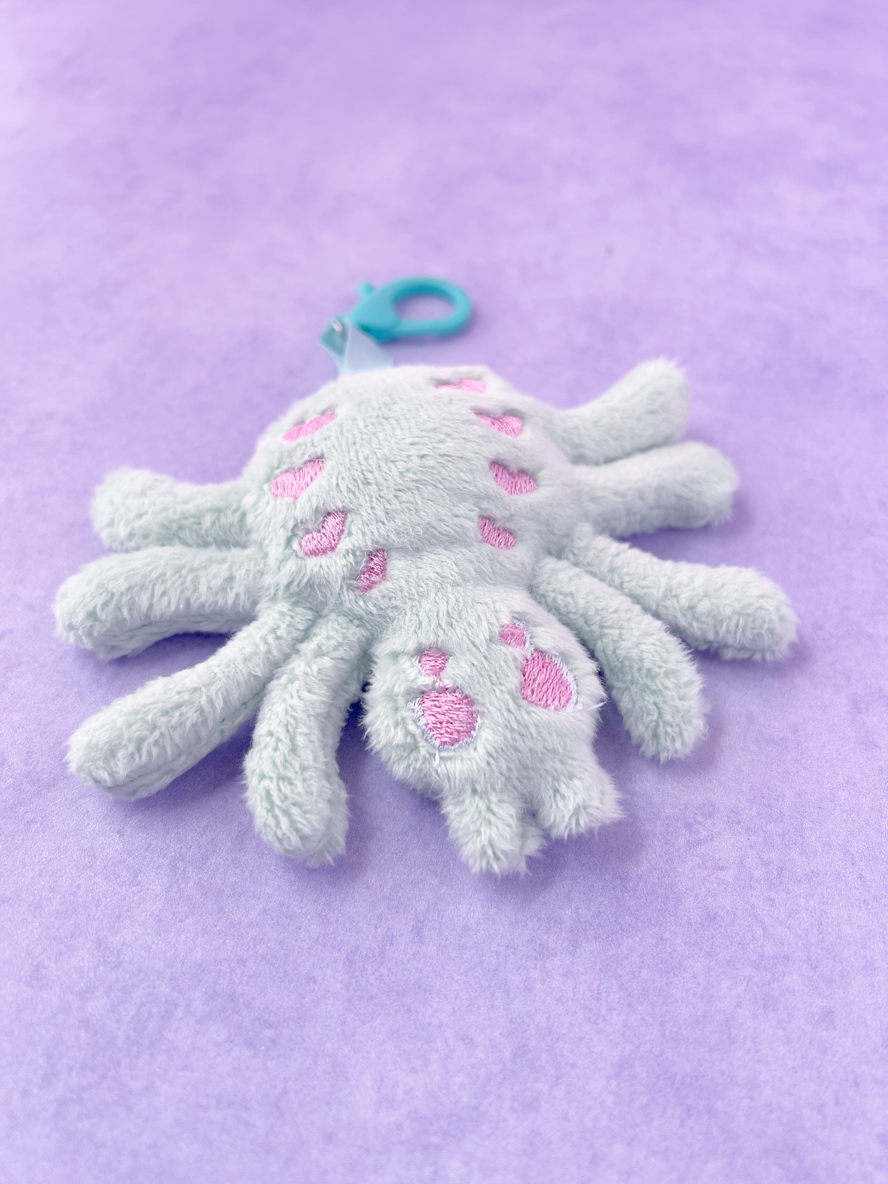 Add a spooky-sweet touch to your bag or keys with this Creepy Cute Pastel Mint Plush Spider Bag Charm! Handmade from ultra-soft mint minky fabric, this adorable spider features embroidered kawaii details including sweet pink heart accents and expressive eyes, giving it the perfect mix of creepy and cute.