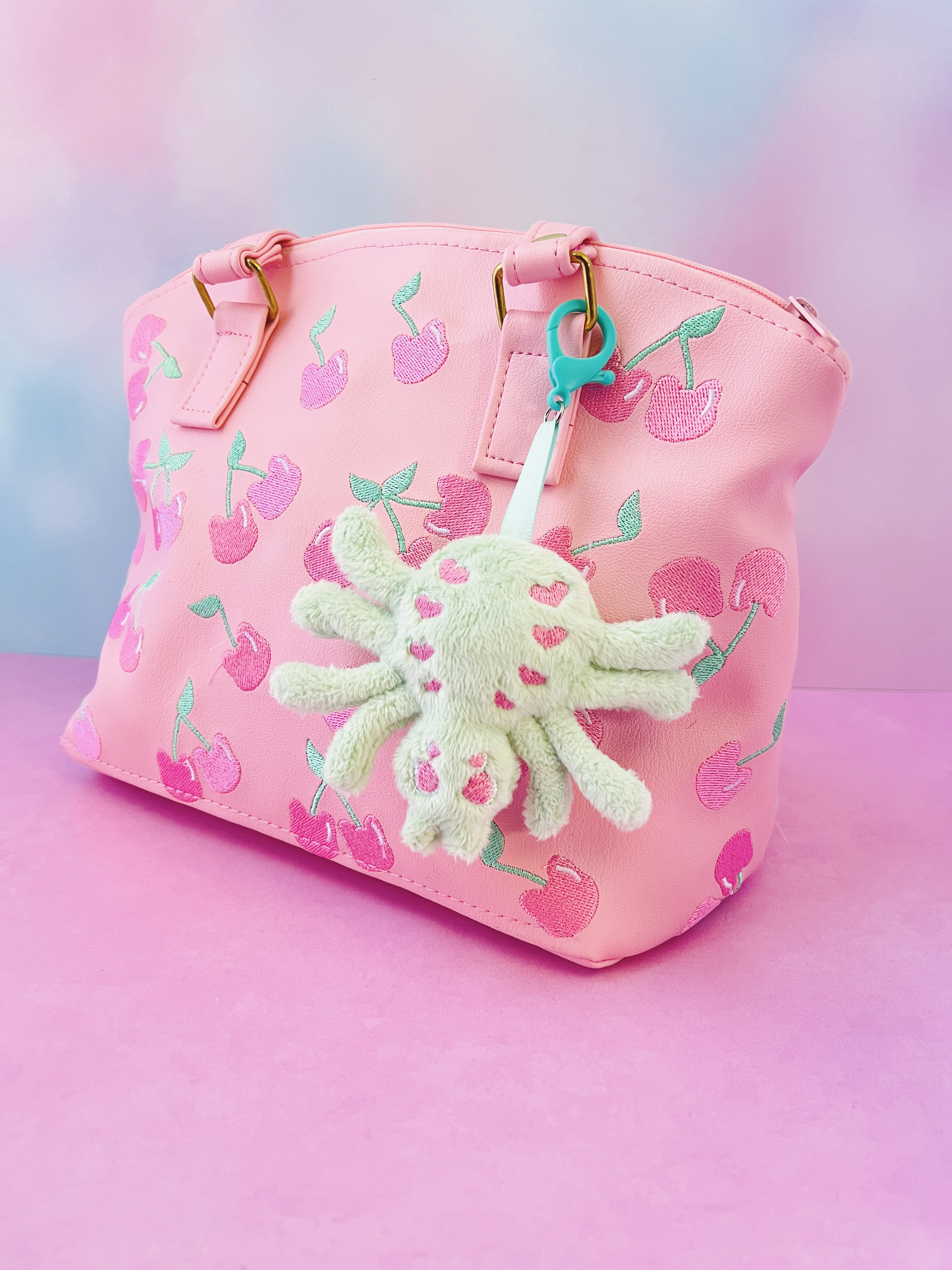 Finished with a sturdy plastic bag clip, this plush spider easily attaches to your purse, backpack, tote, or keys, making it a fun accessory for everyday wear or Halloween style. Perfect for fans of pastel goth fashion, creepy cute accessories, kawaii plush bag charms, spooky décor, and Summerween vibes, this little spider is lightweight, soft, and full of personality.