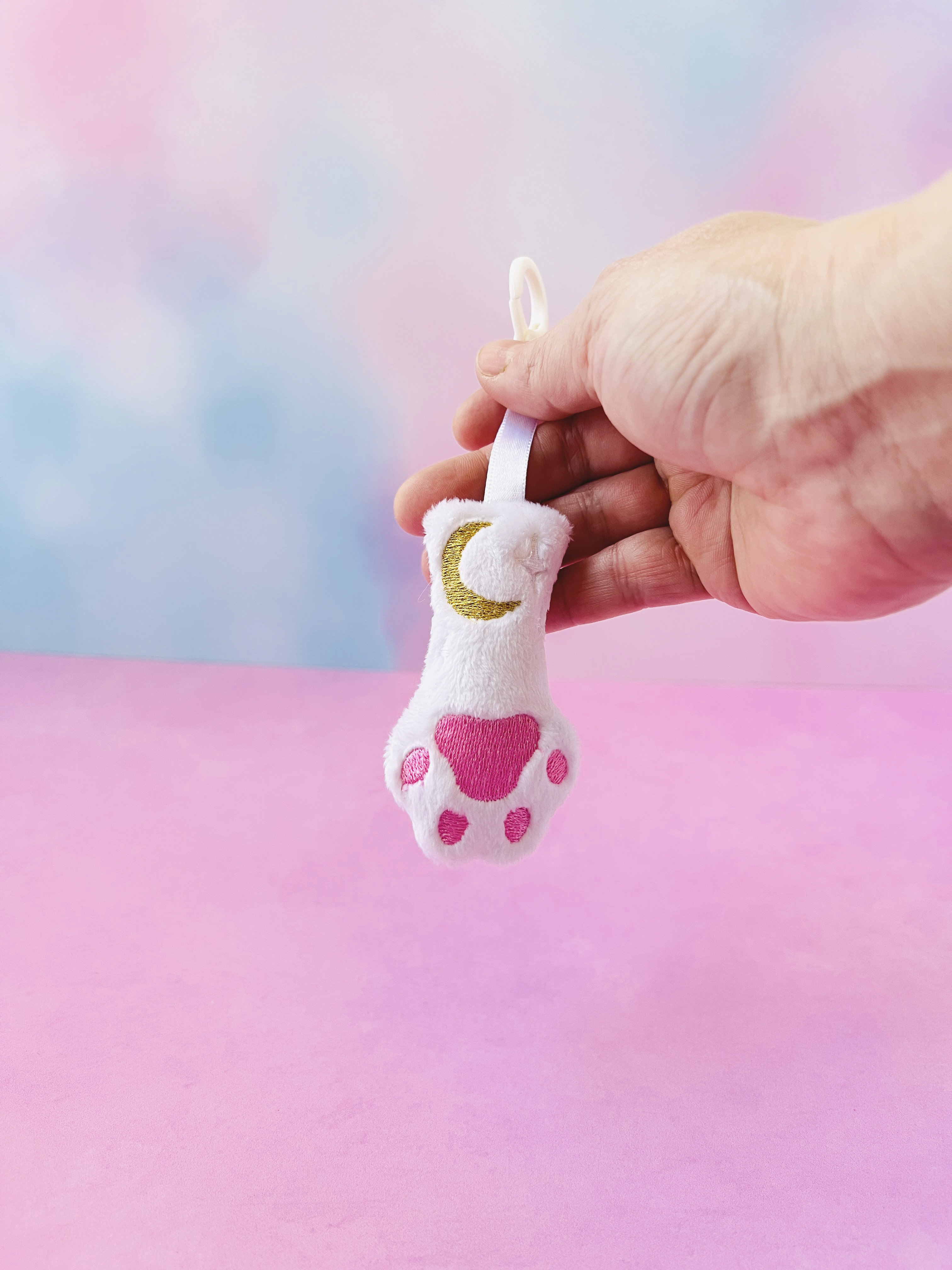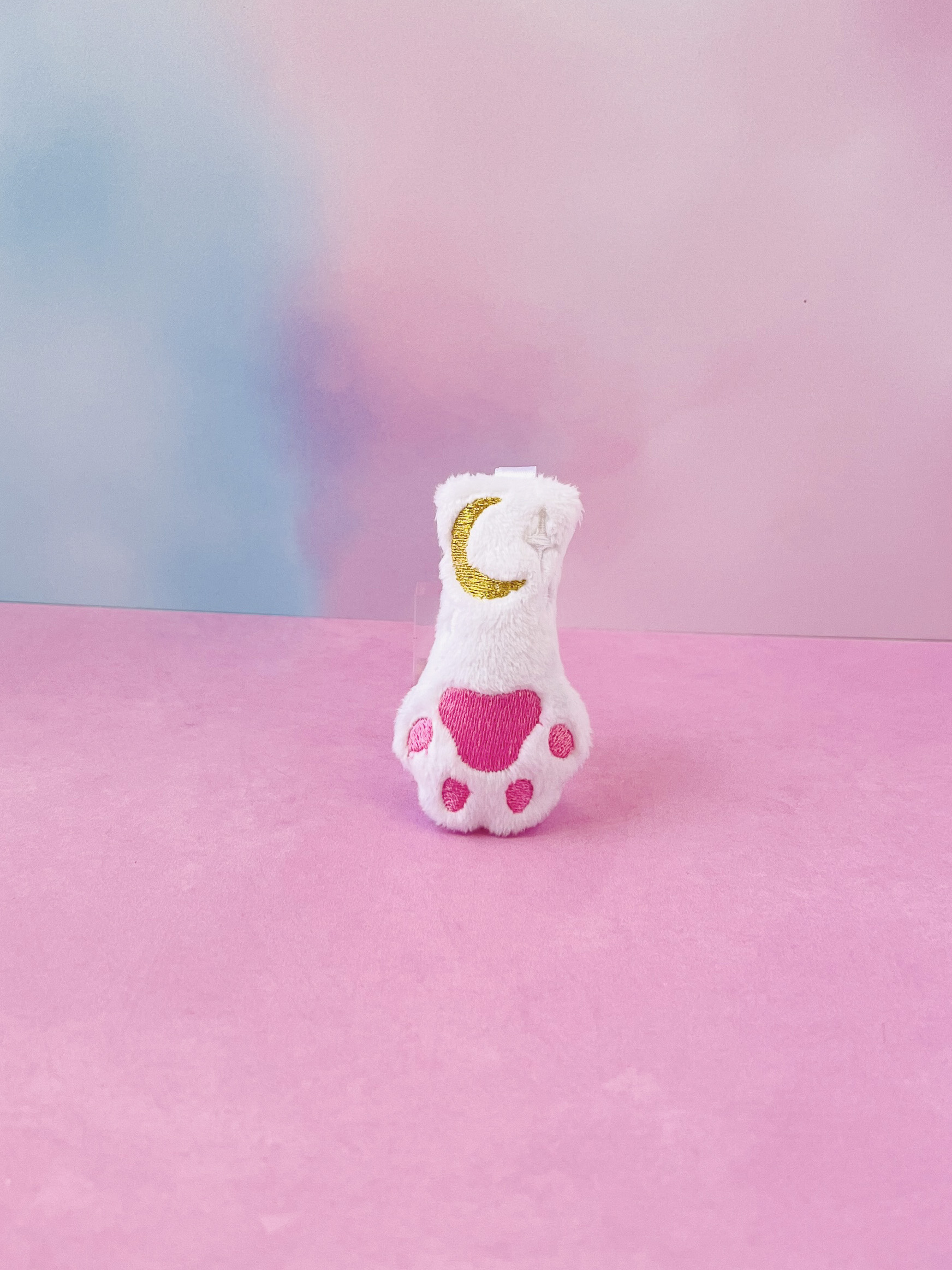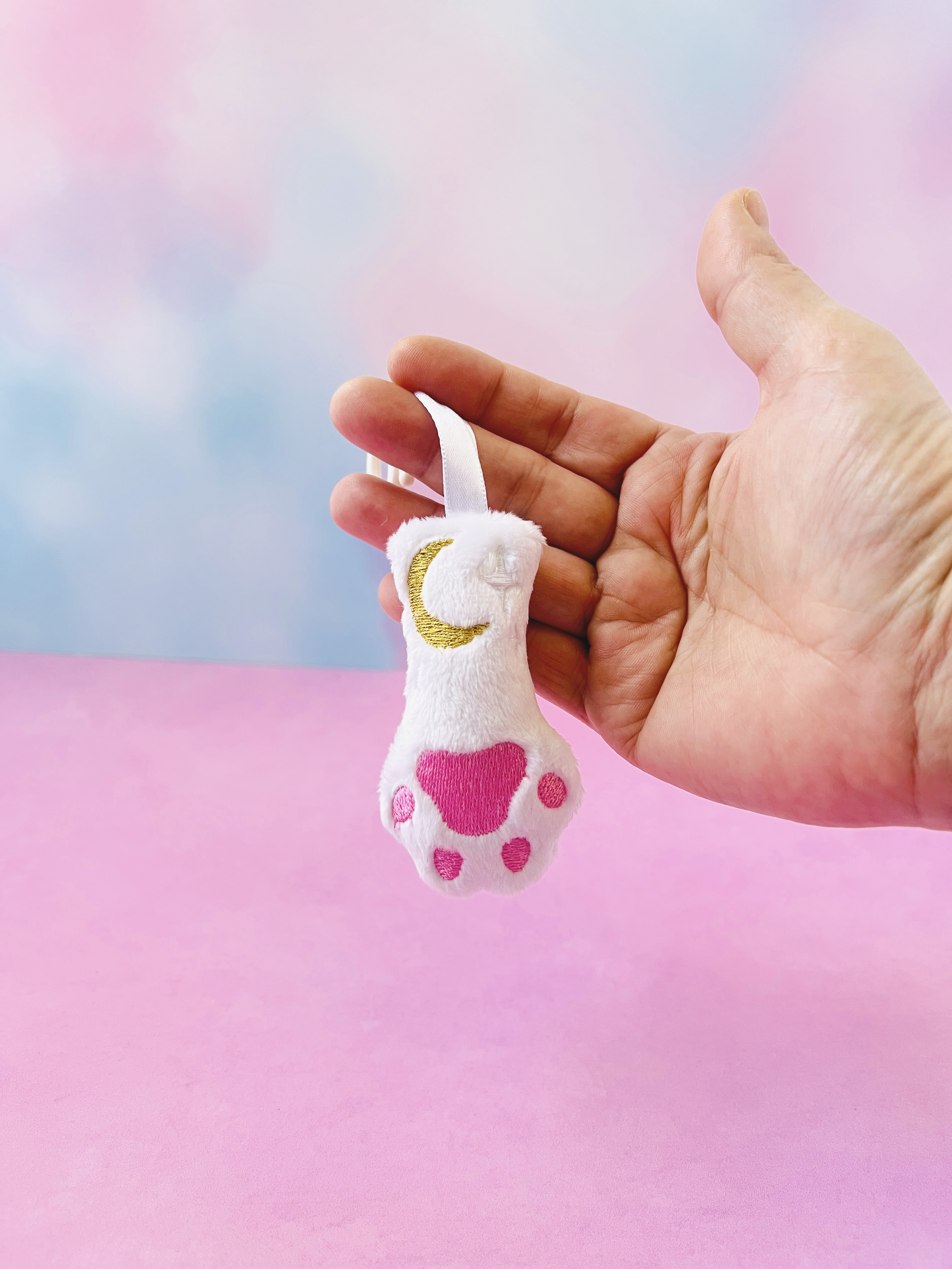 This Celestial Cat Paw Plush Bag Charm is a magical twist on my bestselling cat paw design! Made from soft, plush minky fabric, this version features embroidered crescent moon and white star details for a dreamy, cosmic vibe. Perfect for lovers of celestial aesthetics, astrology-inspired accessories, kawaii fashion, and creepy cute style, this plush paw adds a touch of moonlit magic to your everyday accessories.