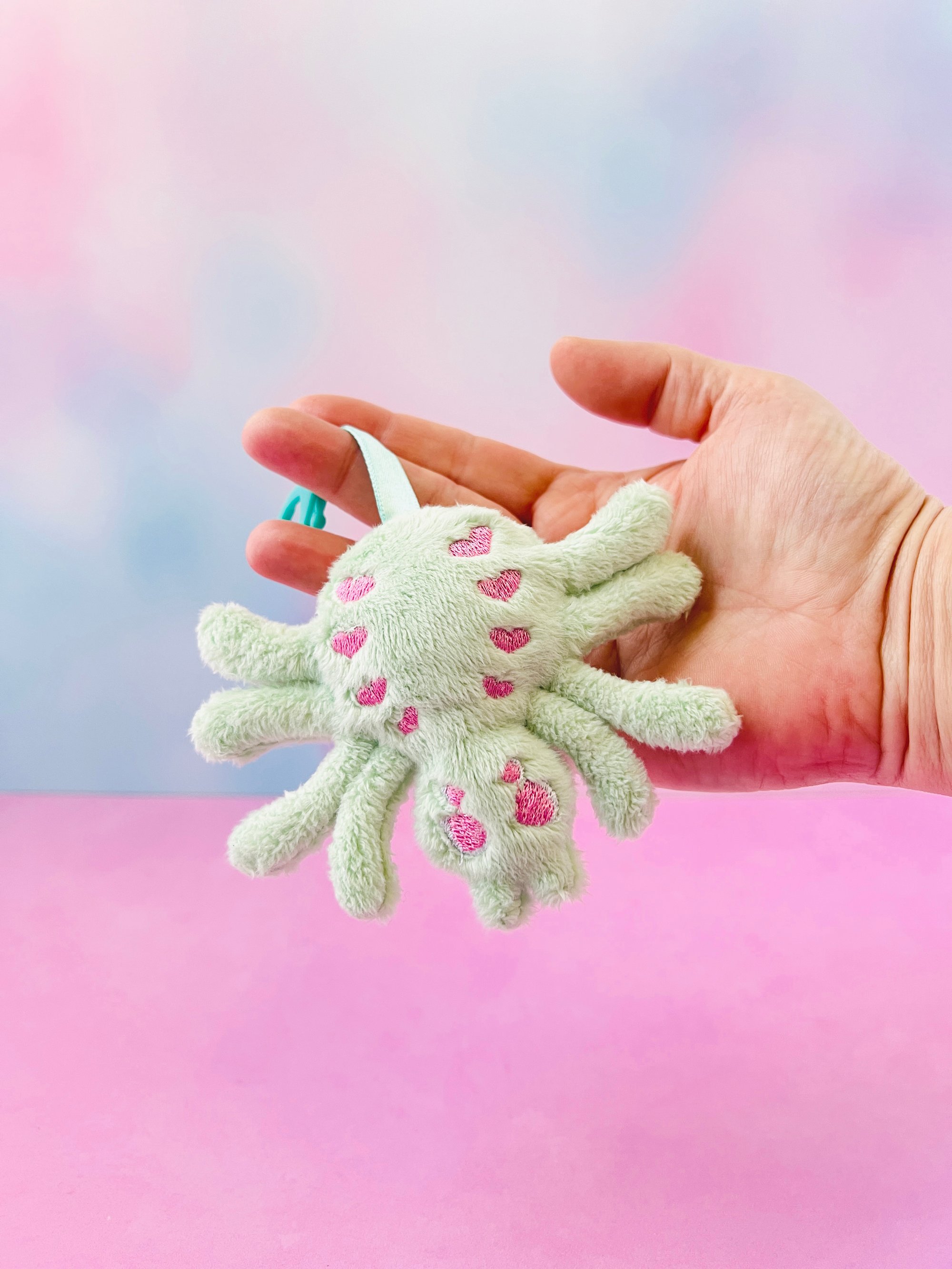 Creepy Cute Pastel Mint Spider Plush Bag Charm Keychain