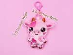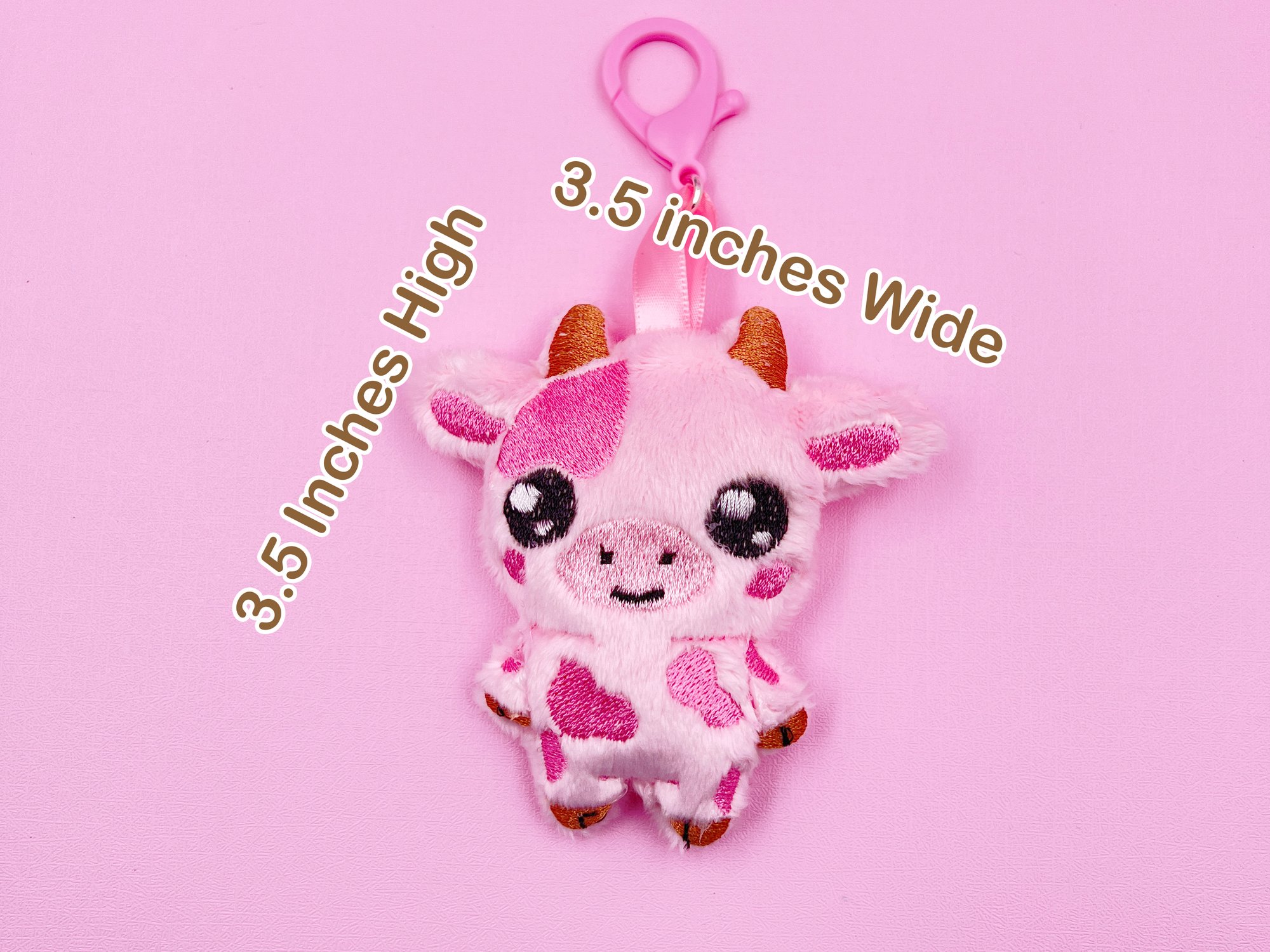 Bring a dose of pastel cuteness everywhere you go with this Pink Cow Plush Bag Charm! Handmade from soft pastel pink minky fabric, this chibi cow features embroidered details like pink spots, a kawaii face, and sweet accents that make it extra adorable. Complete with a sturdy plastic clasp, this plush charm easily clips to your backpack, purse, tote, or keys, making it a fun accessory for any kawaii fan.
